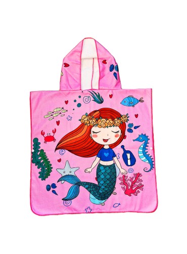 Ponczo plażowe kąpielowe z kapturem ręcznik Syrenka Pink